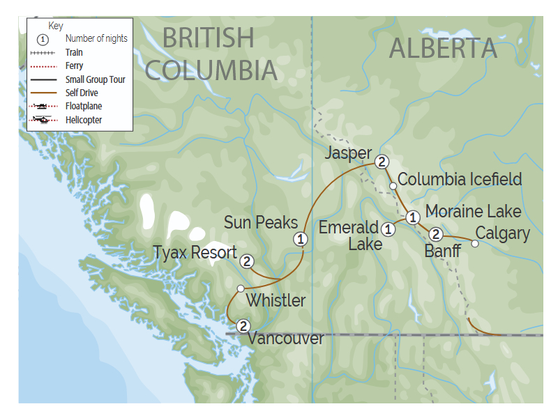 Today, say farewell to the crisp mountain air and breathtaking Rocky landscapes. Drive to Calgary, return your rental car at the airport.